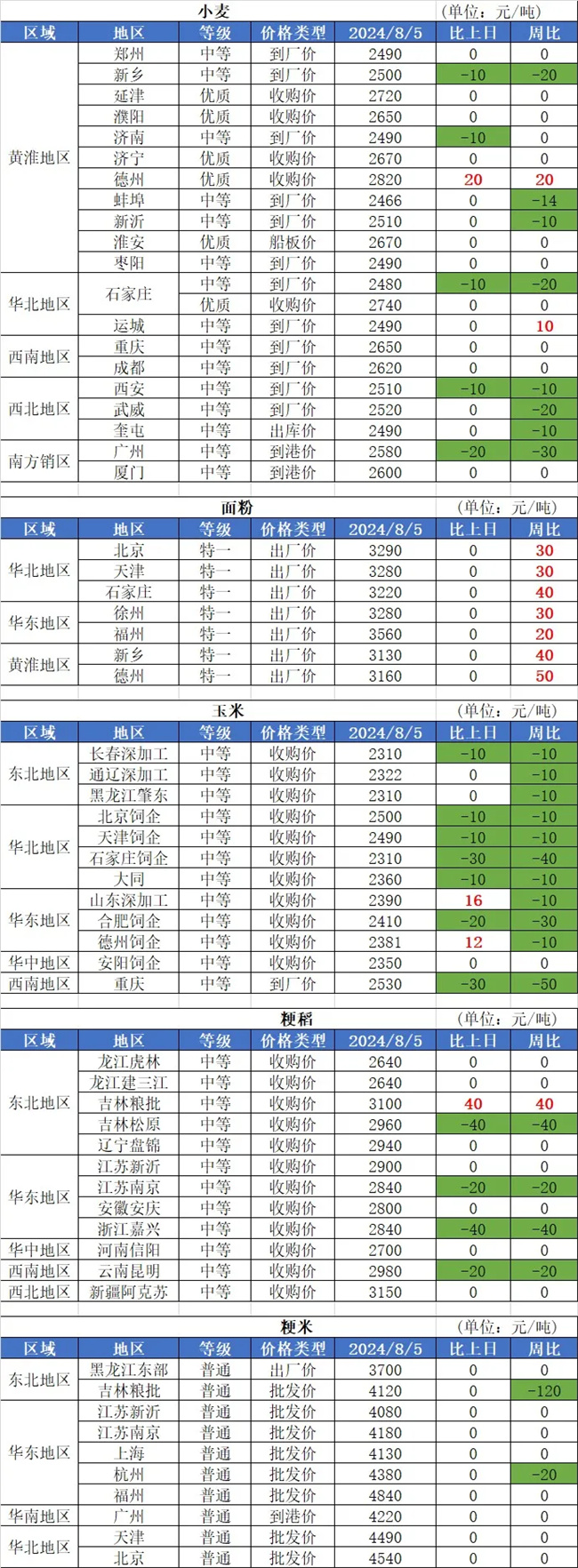 2、8月5日,華北地區(qū)部分深加工企業(yè)玉米收購報價漲跌互現(xiàn),其中山東壽光金玉米玉米收購報價調(diào)整為2390元/噸,較之前報價提高10元/噸;七星檸檬玉米收購價格調(diào)整為2400元/噸,較之前報價下調(diào)10元/噸;山東保齡寶玉米收購價格調(diào)整為2360元/噸,均較之前報價提高10元/噸。
