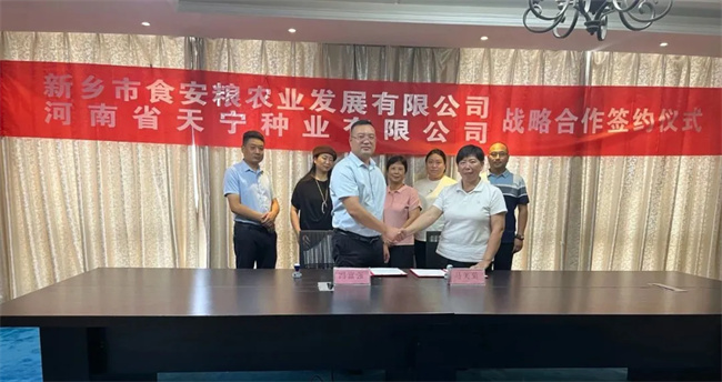 8月3日,新鄉(xiāng)市食安糧農(nóng)業(yè)發(fā)展有限公司(以下簡(jiǎn)稱“食安糧公司”)與河南省天寧種業(yè)有限公司(以下簡(jiǎn)稱“天寧種業(yè)”)就酒糧小麥—天寧58在中原農(nóng)谷簽署了“種糧一體化”戰(zhàn)略合作協(xié)議。食安糧公司總經(jīng)理張麗輝、執(zhí)行董事馮富強(qiáng)、旗下河南谷灃種業(yè)有限公司執(zhí)行董事肖波,河南省天寧種業(yè)有限公司總經(jīng)理馬美菊、銷(xiāo)售總經(jīng)理郝敏等出席簽約儀式。