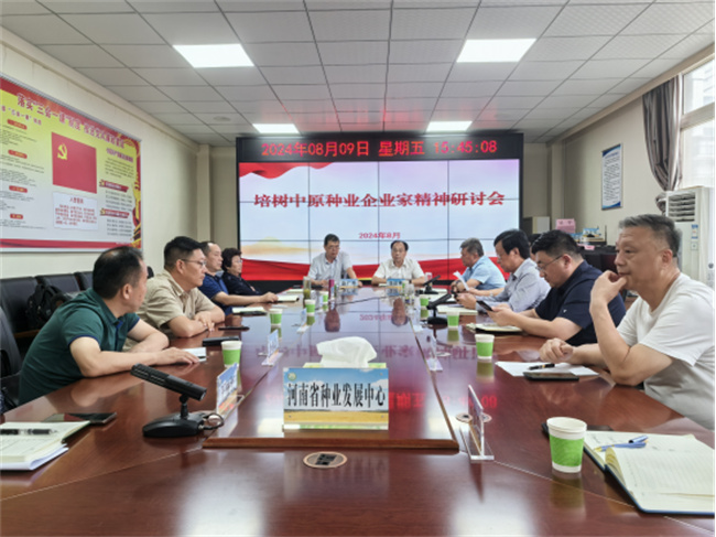 為充分發(fā)揮種業(yè)企業(yè)在種業(yè)振興行動(dòng)中的主體作用,更好凝聚建設(shè)種業(yè)強(qiáng)省的強(qiáng)大合力,8月9日,省種業(yè)發(fā)展中心在鄭州組織召開(kāi)培樹(shù)中原種業(yè)企業(yè)家精神研討會(huì),與會(huì)種業(yè)企業(yè)家圍繞培樹(shù)種業(yè)企業(yè)家精神開(kāi)展了深入交流與研討。中心主任張道明出席會(huì)議并講話,中心副主任林紅新、滕開(kāi)瓊及河南省種子協(xié)會(huì)會(huì)長(zhǎng)、副會(huì)長(zhǎng)和理事單位企業(yè)家代表參加會(huì)議。