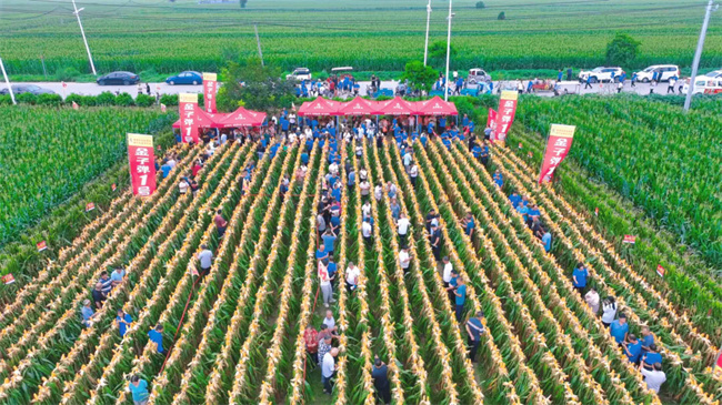 8月7日—8日,金子彈1號千人萬袋觀摩大會在濮陽縣成功召開。來自全國各地代理商、零售商和種地大戶2000余人觀摩品鑒金子彈1號的優(yōu)異表現(xiàn),并在大家的共同見證下,現(xiàn)場測產(chǎn),折合畝產(chǎn)2071斤,其高產(chǎn)穩(wěn)產(chǎn)的優(yōu)勢,得到參會人員的一致好評。