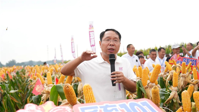河南省農(nóng)科院研究員唐保軍以《新質(zhì)品種匠育101特征特性與玉米大單品培育策略》做專題報(bào)告。報(bào)告從匠育101的選育背景、選育過程和特征特性等方面,從育種專業(yè)角度進(jìn)行全面分析和總結(jié)。他說,匠育101聚合了中美歐系優(yōu)良性狀基因,近年來大田生產(chǎn)表明,匠育101品質(zhì)優(yōu),高產(chǎn)穩(wěn)產(chǎn)、抗倒好,抗性好,活稈成熟,耐密植、脫水快宜機(jī)收等突出優(yōu)勢(shì),能很好適應(yīng)當(dāng)前黃淮海復(fù)雜氣候變化,滿足農(nóng)業(yè)生產(chǎn)急需,有著很好的應(yīng)用前景。同時(shí),也希望各位合作伙伴提托良種優(yōu)勢(shì),良種+良法配套做好技術(shù)服務(wù)推廣,為農(nóng)民增產(chǎn)增收,為大單品奮斗目標(biāo)早日實(shí)現(xiàn)共同努力!