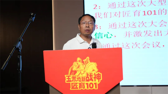 河南愛邦農(nóng)種業(yè)營(yíng)銷總監(jiān)王天雨分享了匠育101近年來在各地優(yōu)秀表現(xiàn),就代理商做好觀摩、會(huì)銷等工作做周密部署和安排。