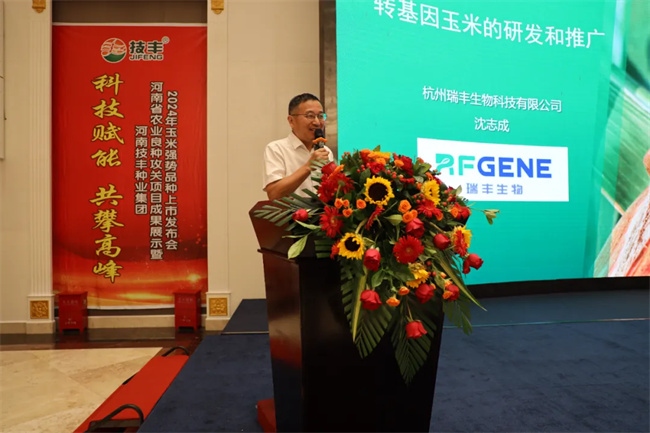 杭州瑞豐生物科技有限公司創(chuàng)始人兼CEO沈志成教授做《生物育種研發(fā)及推廣》專(zhuān)題報(bào)告。報(bào)告介紹了我國(guó)生物育種技術(shù)發(fā)展,科普了生物技術(shù)應(yīng)用前景。同時(shí),他表示,瑞豐生物將繼續(xù)深化戰(zhàn)略合作,助力技豐種業(yè)做行業(yè)的領(lǐng)跑者,實(shí)現(xiàn)高質(zhì)量發(fā)展。