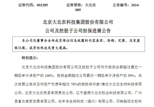 此前,大北農(nóng)發(fā)布公告稱,公司及控股子公司的擔(dān)保額度總金額約為182.05億元(含公司及控股子公司之間互相擔(dān)保額度預(yù)計(jì)的160億元)。