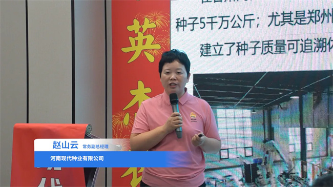 近年來(lái),河南省現(xiàn)代種業(yè)有限公司搶抓種業(yè)振興大好機(jī)遇,加大研發(fā)投入,加快育種速度,圍繞市場(chǎng)需求,培育出一批優(yōu)良品種,并已在市場(chǎng)生根發(fā)芽,特別是接力棒現(xiàn)代959的上市,以其綜合優(yōu)勢(shì)的農(nóng)藝性狀,高產(chǎn)穩(wěn)產(chǎn)的特質(zhì),深受市場(chǎng)歡迎和專家好評(píng),于2024年被推介為河南省農(nóng)業(yè)主導(dǎo)品種。會(huì)上,河南省現(xiàn)代種業(yè)常務(wù)副總經(jīng)理趙山云介紹了公司健全的科研體系、完善的運(yùn)營(yíng)體系,展示了公司產(chǎn)品+營(yíng)銷兩手硬實(shí)力,分享了公司發(fā)展規(guī)劃,為參會(huì)嘉賓對(duì)公司發(fā)展?jié)摿Α⑹袌?chǎng)強(qiáng)勁競(jìng)爭(zhēng)力有了更深入了解,進(jìn)一步增強(qiáng)深度合作的信心。