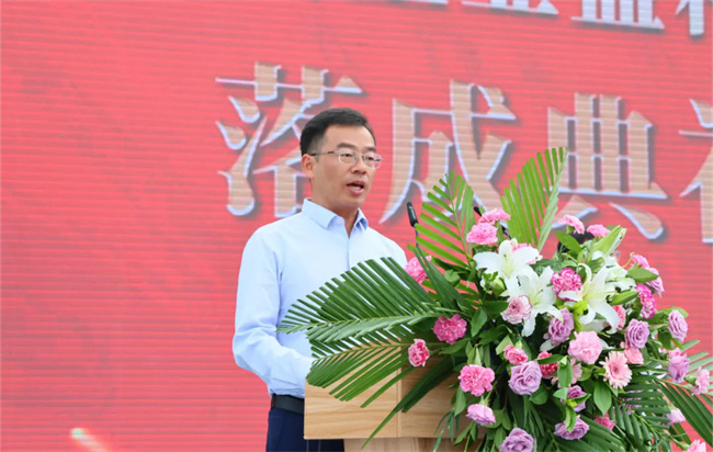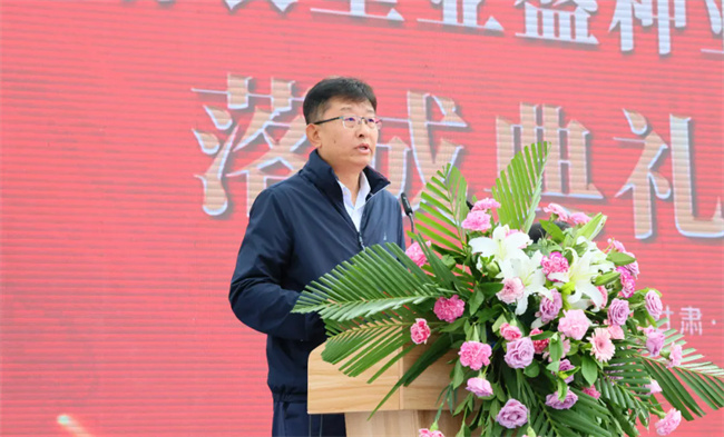 王多成致辭,希望亞盛種業(yè)集團以中墾玉種子加工廠建設(shè)項目為契機,加強與商會會員單位的溝通,加強信息交流與合作,共同建設(shè)標(biāo)準(zhǔn)化、規(guī)?;?、集約化、機械化、信息化的國家級玉米制種基地,帶動群眾致富,促進地方經(jīng)濟發(fā)展,為甘肅種子產(chǎn)業(yè)持續(xù)健康發(fā)展和種業(yè)振興做出新的更大的貢獻。