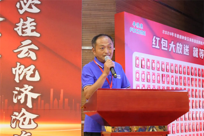 雄鷹展翅任翱翔,哪怕風(fēng)急雨驟。豐德康種業(yè)玉米事業(yè)部總經(jīng)理孟慶樂做《聚焦重點(diǎn)做實(shí)破 凝心聚力共發(fā)展》的主題分享。孟總首先對種業(yè)現(xiàn)狀、國家新政策帶來的種業(yè)變化及發(fā)展趨勢進(jìn)行多維度分析,分享了種業(yè)飽和狀態(tài)下如何正確選擇推廣的品種,及“1愛+2信+3定+4對+5聚”的種業(yè)突圍策略,從4個(gè)維度闡述了公司營銷應(yīng)對措施,就公司下一步營銷核心工作做周密部署。并號召各位合作伙伴只有主動(dòng)出擊,方能搶占心智,贏得主動(dòng)。
