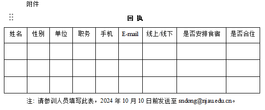線下培訓,在南京農(nóng)業(yè)大學學術交流中心(翰苑賓館,地址:南京市玄武區(qū)童衛(wèi)路20號)。線上培訓,使用騰訊會議軟件,與線下同步進行。