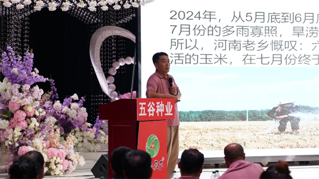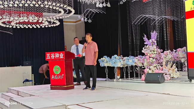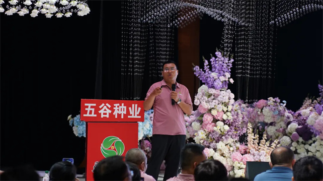 河南五谷種業(yè)營(yíng)銷總監(jiān)袁啟濤首先分析了當(dāng)前種業(yè)現(xiàn)狀及發(fā)展趨勢(shì),介紹了公司科研進(jìn)展及發(fā)展方向,針對(duì)種業(yè)發(fā)展形勢(shì),分享了公司持續(xù)依托品種,聚焦重點(diǎn),優(yōu)化布局,與各位合作伙伴攜手同創(chuàng),共贏未來(lái)!