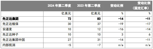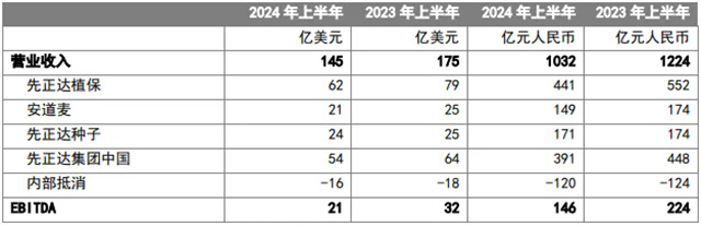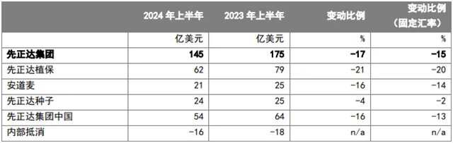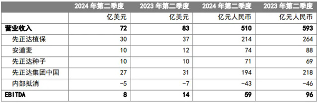 2024 年上半年,先正達(dá)種子營業(yè)收入為 24 億美元,同比下降 4%。