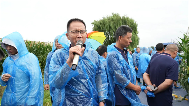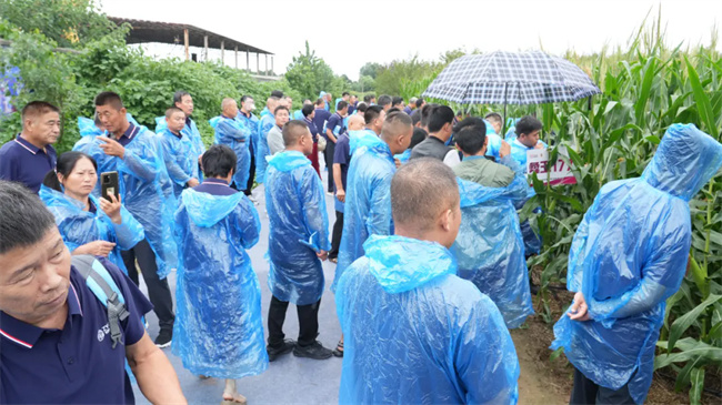 會議期間,參會嘉賓冒雨觀摩了兆育301和蠡玉177大田生產(chǎn)情況,聽取了技術(shù)人員生產(chǎn)管理介紹,并對兩品種給予“大棒更耐密,結(jié)實真給力”的高度評價,堅定未來加強合作的信心!