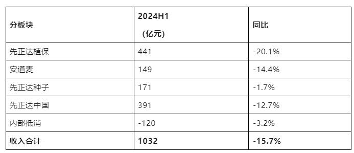 2024年上半年先正達(dá)集團(tuán)營(yíng)業(yè)收入為145億美元,同比下降17%,EBITDA為21億美元,同比下降36%。