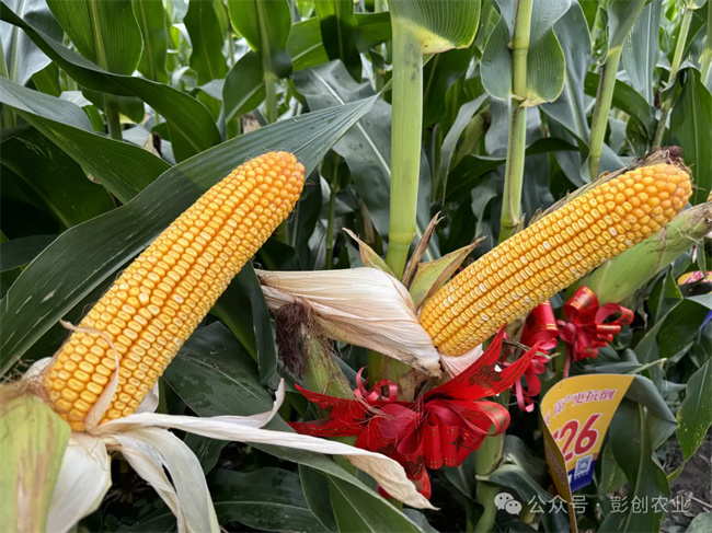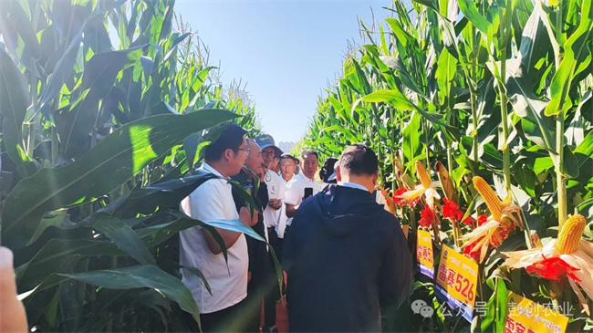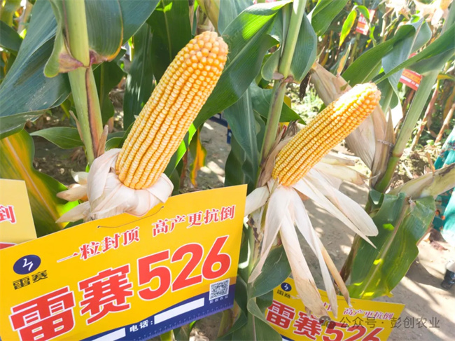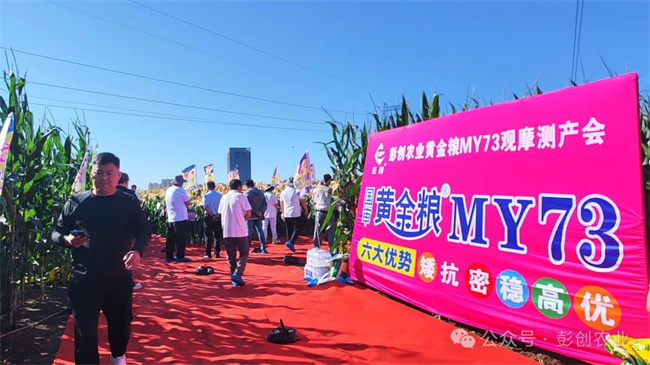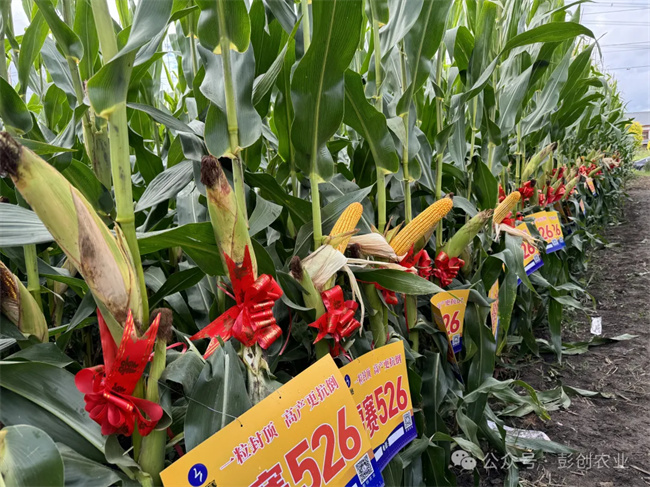 在室外現(xiàn)場,雷賽526、黃金糧MY73兩個(gè)明星品種齊亮相,通過人工撥開玉米穗二畝地,雷賽526和黃金糧MY73的封頂性極好,并且株高一致,穗位整齊,果穗里外均勻一致,抗病性和抗倒強(qiáng),又一次刷新了合作伙伴的認(rèn)識。雷賽526在東北表現(xiàn)非常突出,在2023年第一年單品銷售150萬畝+,黃金糧MY73去年在黃淮海銷售將近3000萬畝,許多客戶也都非常關(guān)注,今年即將通過東華北中晚熟國審,兩大超級單品一稀一密,一定會征服東北市場!