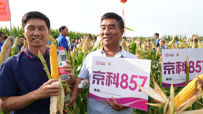 農(nóng)業(yè)農(nóng)村部玉米專家指導(dǎo)組組長(zhǎng)、北京市農(nóng)林科學(xué)院玉米研究所首席科學(xué)家趙久然介紹,北京農(nóng)林科學(xué)院與兆育種業(yè)集團(tuán)深度合作的京科857,是玉米所創(chuàng)新育種理念、思路(高產(chǎn)優(yōu)質(zhì)多抗廣適易制種),創(chuàng)新育種方法,創(chuàng)新核心種質(zhì)、培育骨干親本自交系的基礎(chǔ)上而培育出的突破性品種。具有京科系更高產(chǎn)、更抗逆和更優(yōu)質(zhì)等突出優(yōu)點(diǎn),希望雙方共同努力,將京科857打造成千萬(wàn)畝級(jí)大單品,為農(nóng)民增產(chǎn)增收、糧食單產(chǎn)提升做更大貢獻(xiàn)!