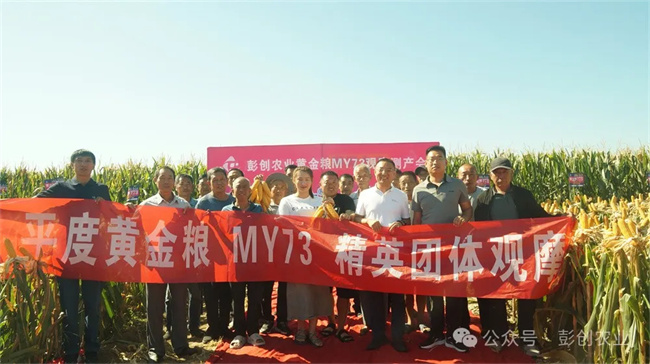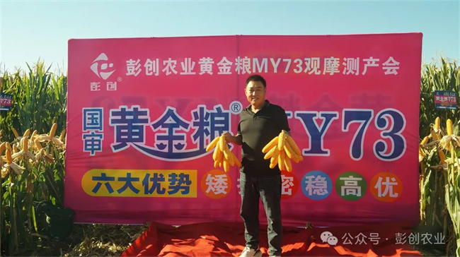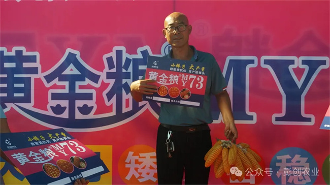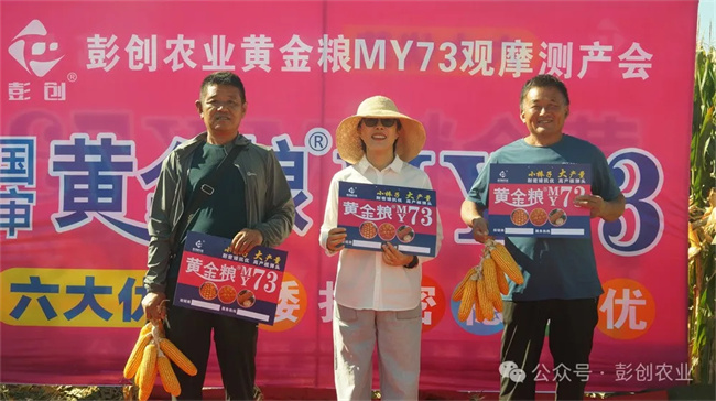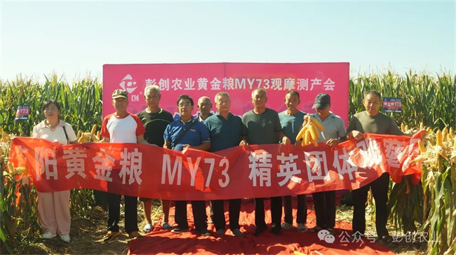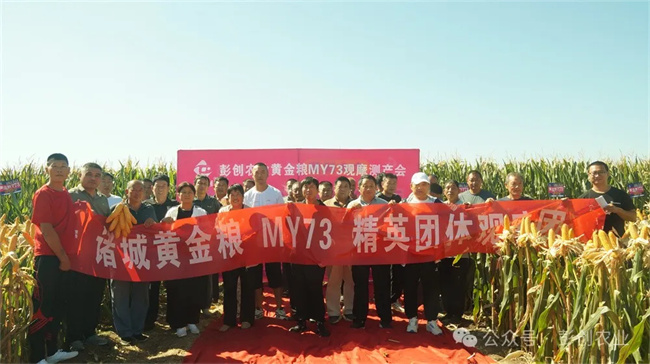 這塊黃金糧參觀地塊的主人說;“我這塊黃金糧MY73是5月12號播種,5500的密度,前期一畝用了100斤的復(fù)合肥,中期追肥用了20斤尿素,30斤的硝酸銨鈣,后期一畝地用了20斤的化肥,黃金糧MY73表現(xiàn)非常好,抗倒伏,產(chǎn)量高,抗青枯。要想多打糧,就種黃金糧。”