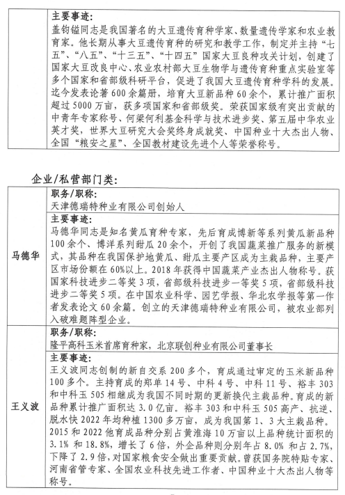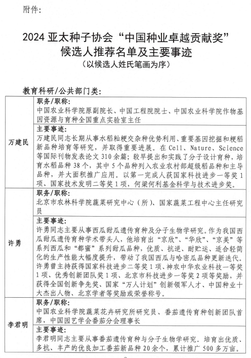 附件:2024亞太種子協(xié)會“中國種業(yè)卓越貢獻獎”候選人推薦名單及主要事跡(以候選人姓氏筆畫為序)
