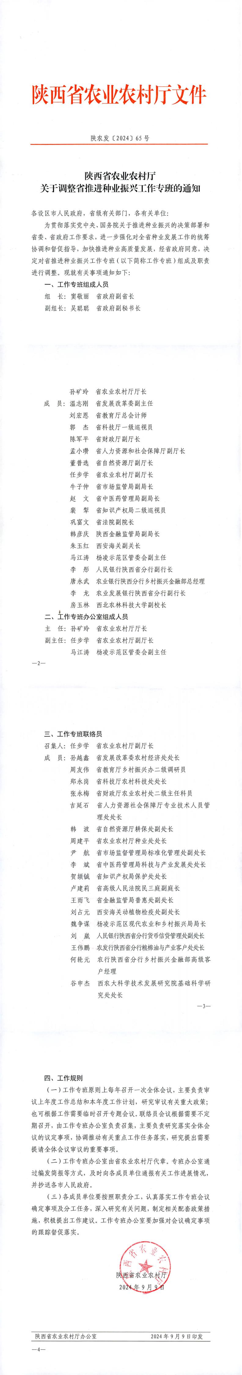 陜西省農(nóng)業(yè)農(nóng)村廳關(guān)于調(diào)整省推進(jìn)種業(yè)振興工作專班的通知