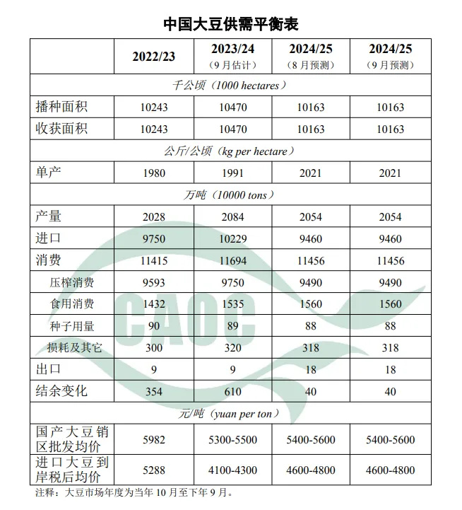 本月對(duì)2024/25年度中國(guó)大豆供需形勢(shì)預(yù)測(cè)與上月保持一致。東北主要產(chǎn)區(qū)土壤墑情適宜,大豆已經(jīng)陸續(xù)進(jìn)入鼓粒期,今年大豆有望獲得豐收。美國(guó)新作大豆產(chǎn)量有望創(chuàng)下歷史新高,北半球大豆即將迎來(lái)集中上市季,全球大豆供應(yīng)形勢(shì)保持寬松狀態(tài)。