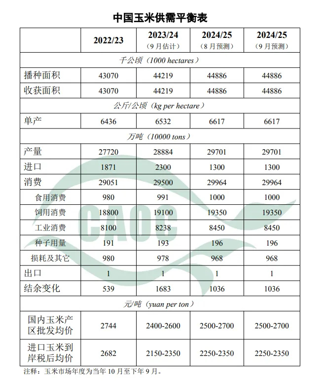 農(nóng)業(yè)農(nóng)村部9月12日發(fā)布2024年9月中國(guó)農(nóng)產(chǎn)品供需形勢(shì)分析:
