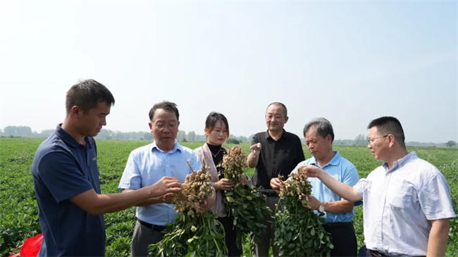 共同見證“濟花8號”高油酸花生豐收盛景。現(xiàn)場,由正陽縣農(nóng)業(yè)農(nóng)村局組織有關(guān)專家組成的測產(chǎn)組對“濟花8號”進行測產(chǎn),“濟花8號”平均畝產(chǎn)為486.6公斤!