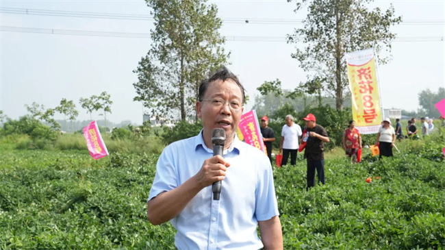 9月8日上午,參會人員對位于正陽縣汝南埠鎮(zhèn)種植的“濟花8號”進行觀摩。觀摩田內(nèi),山東省農(nóng)科院生物技術(shù)研究中心主任王興軍介紹了“濟花8號”高油酸花生具有產(chǎn)量高,出油率高,油酸含量高,營養(yǎng)價值高,亞油酸低等特點,介紹了“濟花8號”種植及推廣的廣闊前景。同時,參會代表圍繞“濟花8號”高油酸花生的種植技術(shù)、產(chǎn)量表現(xiàn)和市場前景等方面進行了深入交流。