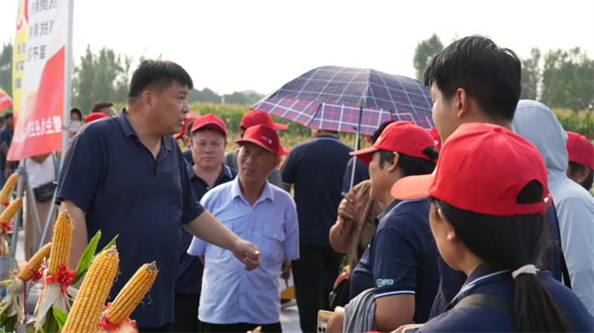 與會(huì)人員參觀(guān)了隆平生物—新鄉(xiāng)育種實(shí)驗(yàn)基地,公司科技人員介紹了實(shí)驗(yàn)地建設(shè)情況,對(duì)參試品種、種植技術(shù)進(jìn)行了詳細(xì)講解。與會(huì)人員深入田間仔細(xì)觀(guān)察本場(chǎng)會(huì)議“主角”MC220的長(zhǎng)勢(shì)表現(xiàn),詳細(xì)了解品種的生育期、抗病性、豐產(chǎn)性、適應(yīng)性等特征特性,在田間地頭直觀(guān)地看出MC220綜合農(nóng)藝性狀優(yōu)勢(shì)。