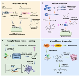 該研究總結(jié)了近期開創(chuàng)性成果,將挖掘靶向殺菌劑的策略歸納為四種形式:老藥新用、親和篩選、基于受體結(jié)構(gòu)的虛擬篩選和基于配體的藥物設計,并指出使用水稻免疫激發(fā)子用于稻瘟病防控的潛力。這些發(fā)現(xiàn)標志著在防控稻瘟病上取得新的實質(zhì)性進展,是對基于稻瘟菌致病機制及水稻抗病機制解析理論研究的推動。預計未來人工智能技術將更多地應用于創(chuàng)新型靶向殺菌劑和免疫激活劑的研發(fā)。