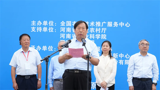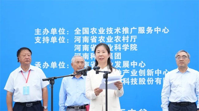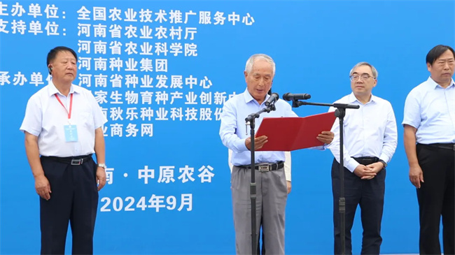 河南省農業(yè)農村廳黨組成員、副廳長王俊忠在講話中指出,國以農為本,農以種為先,新時代、新征程上,河南正加快實施種業(yè)振興,加速構建以中原農谷為核心的種業(yè)全鏈條的科技創(chuàng)新生態(tài)圈,著力打造大科創(chuàng)平臺,聚力開展育種核心攻關,主要農作物新品種選育成果豐碩。十四五期間,河南育成國審新品種568個,省審品種911個。國審鄭麥379、鄭麥1860、百農4199等小麥品種,中科玉505、秋樂368等玉米品種先后被農業(yè)農村部認定為農業(yè)生產主導品,為扛穩(wěn)糧食安全重任提供了有力支撐。2024年,河南小麥總產757億斤,單產445公斤/每畝,均居全國第一位。王俊忠強調,種業(yè)振興,為保障糧食安全開展的主要農作物新品種展示示范,是驗證品種的適應性、穩(wěn)定性、安全性的重要途徑,是集中展示育種科技成果,促進新品種快速推廣的重要載體,示范引導種植農戶和經營主體科學選種的重要手段。同時,王俊忠表示,希望各位領導、各位專家、各位代表,一如既往的關心支持河南種業(yè)高質量發(fā)展,助推河南省加快種業(yè)強省建設,共同為保證國家糧食安全做出種業(yè)領域的更大貢獻。
