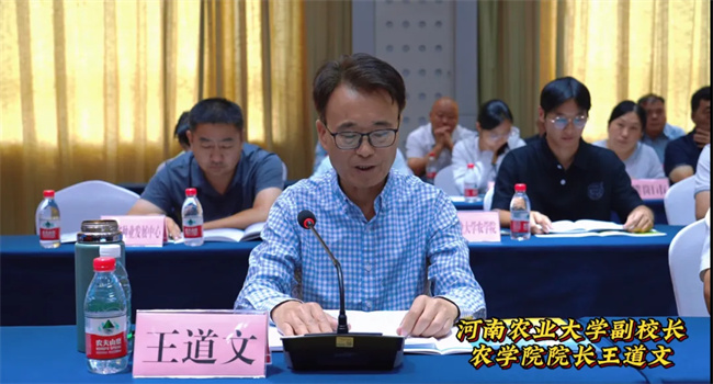 河南省農(nóng)業(yè)農(nóng)村廳黨組成員、副廳長王俊忠,河南農(nóng)業(yè)大學(xué)原校長、博士生導(dǎo)師介曉磊教授,開封市委副書記盧志軍,河南農(nóng)業(yè)大學(xué)副校長兼農(nóng)學(xué)院院長王道文教授,開封市人民政府黨組成員王玨,河南省農(nóng)業(yè)農(nóng)村廳種業(yè)管理處處長王萌,河南省農(nóng)業(yè)大學(xué)地方合作處處長趙翠萍,河南省農(nóng)業(yè)大學(xué)農(nóng)學(xué)院黨委書記賈磊,開封市農(nóng)業(yè)農(nóng)村局局長劉磊,尉氏縣人民政府縣長陳志剛,河南省農(nóng)業(yè)農(nóng)村廳、河南農(nóng)業(yè)大學(xué)、開封市人民政府、開封市農(nóng)科院、濮陽市農(nóng)科院、周口市農(nóng)科院,及河南省各地市種子站的主要負(fù)責(zé)人和相關(guān)單位領(lǐng)導(dǎo)、專家出席會(huì)議。河南省花生良種聯(lián)合攻關(guān)項(xiàng)目首席專家、河南農(nóng)業(yè)大學(xué)教授殷冬梅、河南金沃野農(nóng)業(yè)發(fā)展有限公司董事長、項(xiàng)目總負(fù)責(zé)人李憲挺參會(huì)并做了匯報(bào)發(fā)言。會(huì)議由開封市人民政府黨組成員王鈺主持!