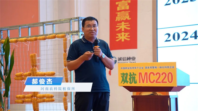好種質(zhì),好種子。會上,北京市農(nóng)林科學(xué)院玉米研究所陳傳永博士介紹了玉米所利用優(yōu)異種質(zhì)資源培育父母本高配合力的MC220選育過程,及品種抗性好、廣適、高產(chǎn)穩(wěn)產(chǎn)綜合優(yōu)勢。