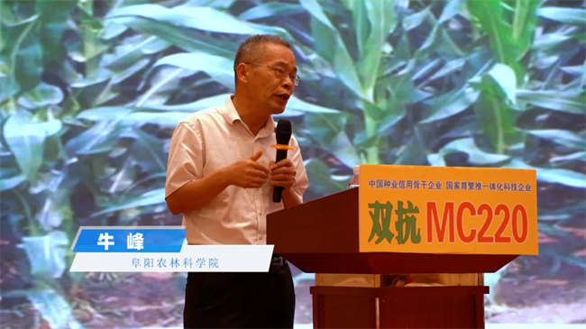 通過高產(chǎn)栽培技術(shù),充分發(fā)揮品種價值,是滿足當(dāng)前農(nóng)業(yè)生產(chǎn)需要重要目標(biāo)。會上,阜陽市農(nóng)業(yè)科學(xué)院牛峰研究員做《夏玉米畝產(chǎn)850公斤高產(chǎn)栽培及大面積單產(chǎn)提升》專題分享。報告圍繞優(yōu)良品種,就如何配套高產(chǎn)栽培技術(shù)措施,實現(xiàn)高產(chǎn)及大面積單產(chǎn)提升生產(chǎn)目標(biāo)。