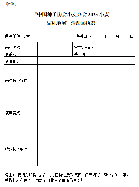 附件:“中國種子協(xié)會(huì)小麥分會(huì)2025小麥品種地展”活動(dòng)回執(zhí)表