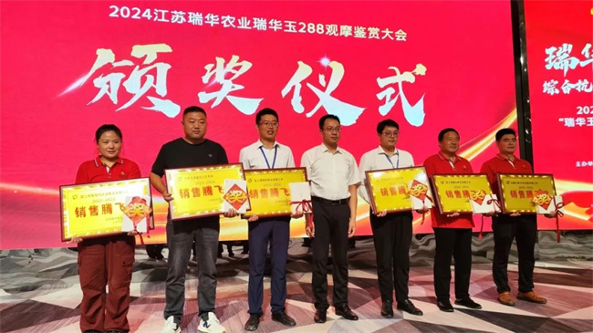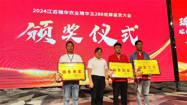 為激勵(lì)更多的合作伙伴向先進(jìn)學(xué)習(xí),向榜樣靠攏。會(huì)議現(xiàn)場(chǎng),公司特為2024年度瑞華玉288銷售作出突出貢獻(xiàn)的合作伙伴頒發(fā)了銷售先鋒獎(jiǎng)、銷售騰飛獎(jiǎng),以及頒發(fā)了全年銷量冠軍、亞軍、季軍等獎(jiǎng)項(xiàng)。