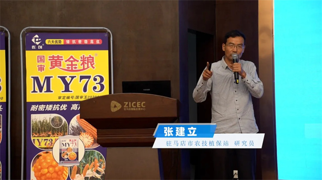 良種配良法,不僅是提高糧食產(chǎn)量的重要路徑,也是充分發(fā)揮科技創(chuàng)新成果價(jià)值所在。會(huì)上,駐馬店市植保站張建立研究員結(jié)合黃金糧MY73品種特性,從植保技術(shù)的專業(yè)角度進(jìn)行賦能分享,以期進(jìn)一步提高黃金糧MY73的產(chǎn)量和品質(zhì)。