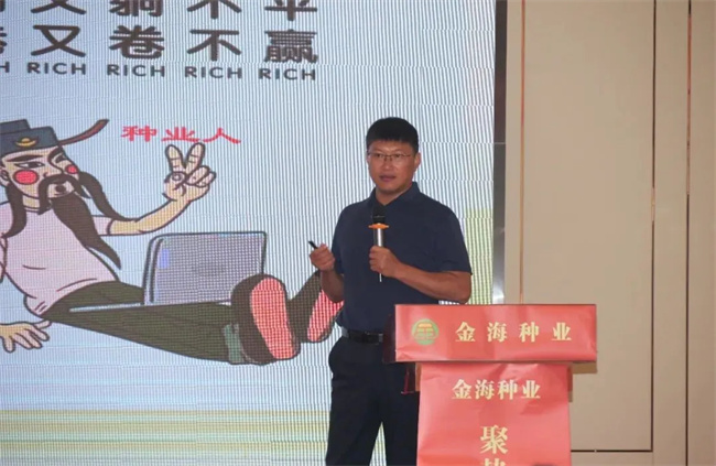 當(dāng)前,種業(yè)市場(chǎng)競(jìng)爭(zhēng)激烈,品種多元化發(fā)展,如何在復(fù)雜形勢(shì)下?lián)屪バ碌陌l(fā)展機(jī)遇,創(chuàng)新突圍,室內(nèi)會(huì)上,金海種業(yè)副總經(jīng)理、河南金海種業(yè)總經(jīng)理何建國(guó)圍繞當(dāng)前種業(yè)現(xiàn)狀及品種發(fā)展趨勢(shì),就如何選擇主推品種及金海系統(tǒng)的推廣模式進(jìn)行深入剖析,分享了公司以多主體、多品牌及多品種運(yùn)營(yíng)策略應(yīng)對(duì)市場(chǎng)變化的發(fā)展戰(zhàn)略,為各位經(jīng)銷(xiāo)商對(duì)金海種業(yè)的行業(yè)優(yōu)勢(shì)有了進(jìn)一步了解,堅(jiān)定了繼續(xù)緊密合作信心。