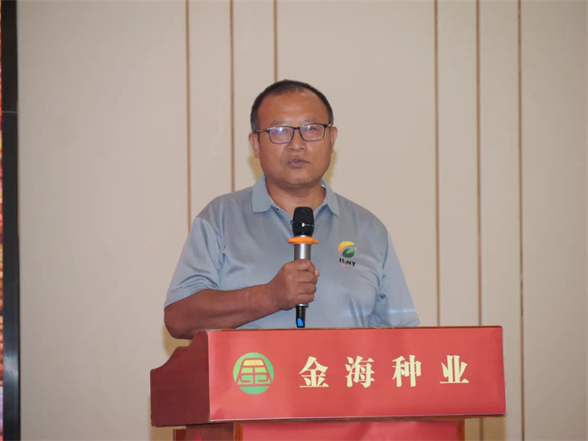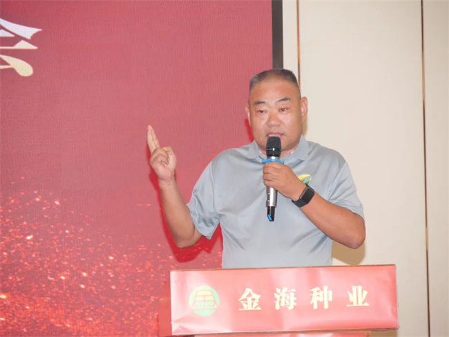 最后,金海事業(yè)部豫皖晉陜省區(qū)總經(jīng)理賈新旺全面介紹了本次會(huì)議所展示的品種特點(diǎn)、亮點(diǎn)和賣(mài)點(diǎn),強(qiáng)調(diào)了新品種將為農(nóng)民帶來(lái)更高的產(chǎn)量和更好的經(jīng)濟(jì)效益,助力農(nóng)民增收致富。并發(fā)布2024—2025年度賦能扶持政策,助力經(jīng)銷(xiāo)商伙伴提高競(jìng)爭(zhēng)力。最后,賈新旺表示,公司始終堅(jiān)持建國(guó)內(nèi)一流種業(yè)企業(yè),創(chuàng)世界一流推廣品種;深入民心造百姓之福,走向世界創(chuàng)品牌之巔;競(jìng)爭(zhēng)合作促發(fā)展,做強(qiáng)國(guó)內(nèi)大種業(yè)的發(fā)展理念,踐行合作共贏,相互成就的合作模式,愿與各位攜手同行,再創(chuàng)佳績(jī)!