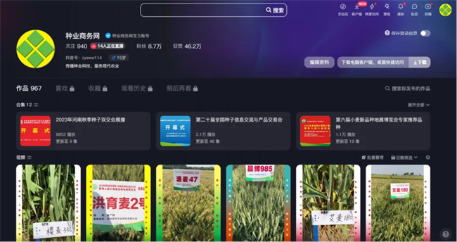 種業(yè)商務網(wǎng)-抖音號2020年注冊運營,現(xiàn)有《種業(yè)商務網(wǎng)》、《種業(yè)商務網(wǎng)- 愛農(nóng)》、《種業(yè)商務網(wǎng)-護農(nóng)》、《種業(yè)商務網(wǎng)-幫農(nóng)》、《種業(yè)商務網(wǎng)-助農(nóng)》、《種業(yè)商務網(wǎng)-潤農(nóng)》、《種業(yè)商務網(wǎng)-興農(nóng)》7個直播間矩陣,目前已累計30余萬粉絲,并每天保持1000+粉絲增長,種業(yè)商務網(wǎng)-抖音號采用主播農(nóng)業(yè)技術(shù)講解+產(chǎn)品全生育期時時直播+產(chǎn)品廣告植入+短視頻制作發(fā)布方式,每日適時更新,每個直播間每天5個小時直播時長(7個直播間共計35小時),每天累計觀眾30余萬人次,是種業(yè)商務網(wǎng)農(nóng)技知識科普,產(chǎn)品宣傳的良好窗口。