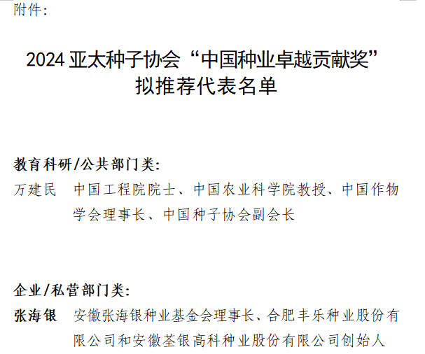 附件:2024亞太種子協(xié)會(huì)“中國(guó)種業(yè)卓越貢獻(xiàn)獎(jiǎng)”擬推薦代表名單