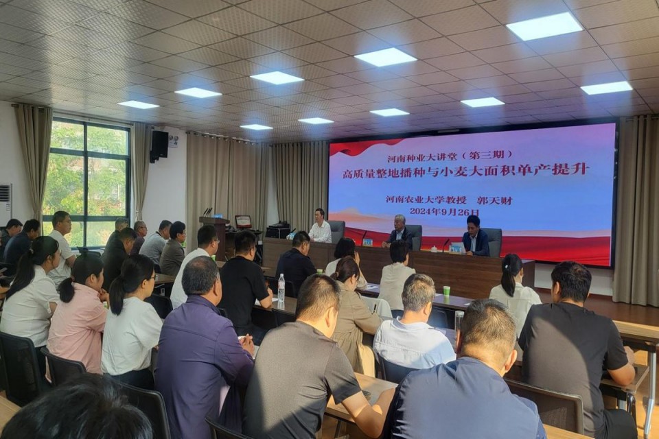 當(dāng)前,全省秋作物從南至北陸續(xù)進(jìn)入收獲期,新一季小麥播種即將大范圍展開。為助力我省優(yōu)質(zhì)小麥大面積單產(chǎn)提升行動,9月26日,河南省種業(yè)發(fā)展中心、河南省種子協(xié)會舉辦了第三期種業(yè)大講堂,特邀河南農(nóng)業(yè)大學(xué)郭天財(cái)教授作《高質(zhì)量整地播種與小麥大面積單產(chǎn)提升》專題講座。中心副主任林紅新主持,省種子協(xié)會副會長及理事單位代表、種業(yè)企業(yè)代表及中心干部職工參加。