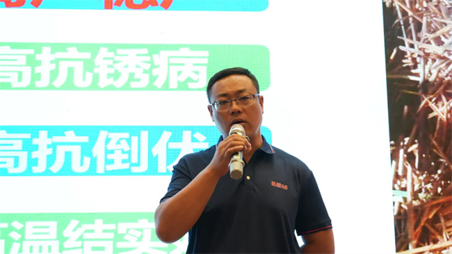 品種泛濫、產品過剩、廠家多、經營迷茫……種業(yè)轉型期,種子經銷商如何破局升級?選對品種和廠家是經銷商成功的關鍵。會上,北京縱橫種業(yè)黃淮海俊杰軍團銷售總監(jiān)王俊杰結合種業(yè)發(fā)展實際,就什么是好品種、好廠家所應具備的特質向與會嘉賓進行全面分析。介紹了高產穩(wěn)產、高抗倒伏、抗銹病、高溫結實好和密度彈性大——縱橫26的特點和優(yōu)勢,分享了農大628棒大、穗勻、抗銹、耐高溫、結實好等高產、“顏值擔當”的突出亮點和賣點。闡述了公司2024—2025年度聚焦產品優(yōu)勢區(qū)域、營銷精耕細作、人財物聚焦的全方位支持營銷策略。