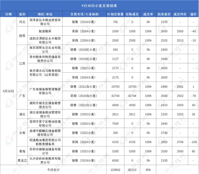 圖2:9月30日地方儲備小麥交易結(jié)果