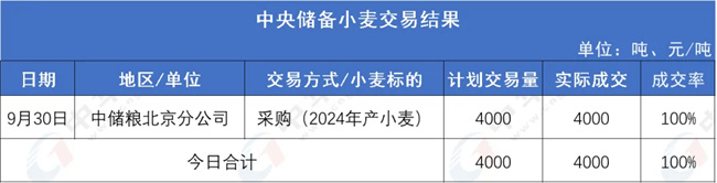 圖3:9月30日中央儲備小麥交易結(jié)果