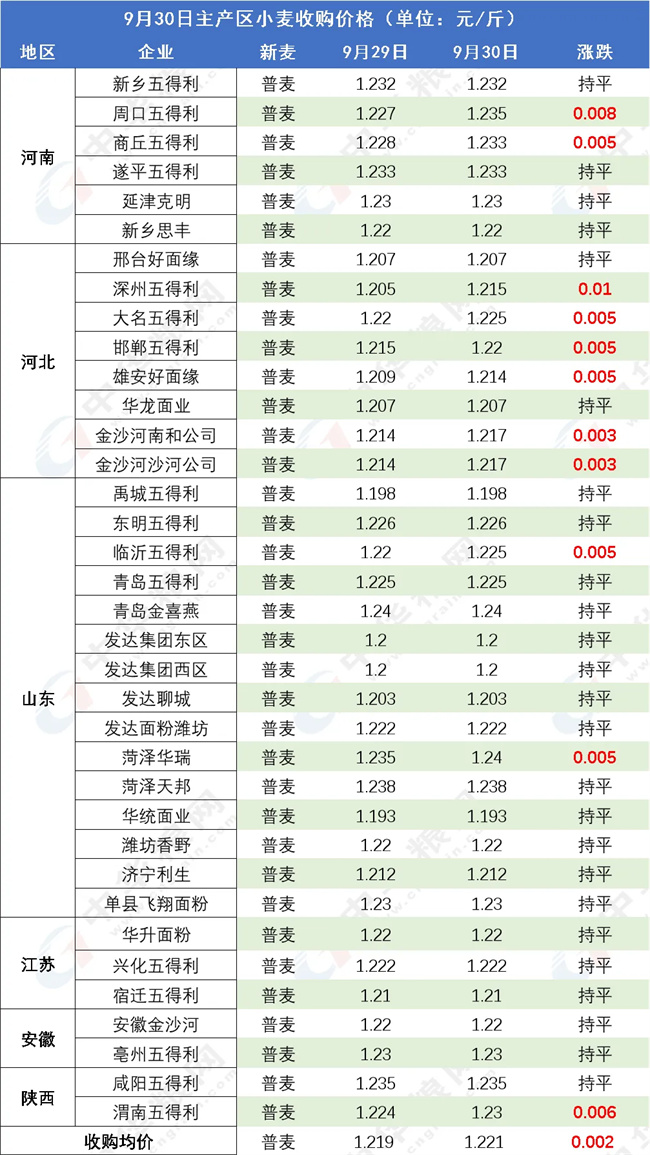 單縣飛翔小麥價格上調(diào)5厘,含票價1.24,執(zhí)行時間2024年10月01日7:19(累計漲2分)