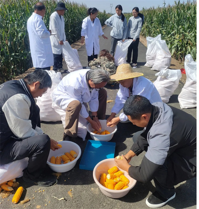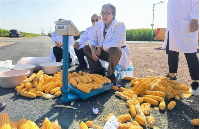 本次測產(chǎn)按照農(nóng)業(yè)農(nóng)村部玉米專家指導(dǎo)組和全國玉米栽培學(xué)組共同制定的《關(guān)于玉米高產(chǎn)、超高產(chǎn)田間測產(chǎn)驗(yàn)收方法和標(biāo)準(zhǔn)》進(jìn)行實(shí)收,經(jīng)過測量面積和籽粒水分、稱重、折合14%的水分等環(huán)節(jié)。最后,測產(chǎn)組組長李少昆研究員宣讀了熙單33百畝高產(chǎn)攻關(guān)田的實(shí)收產(chǎn)量為2046.22斤/畝,實(shí)現(xiàn)了2024年河北省夏玉米百畝高產(chǎn)攻關(guān)田新突破。本次測產(chǎn)活動(dòng)在中國種子協(xié)會(huì)邀請的見證官趙健、劉老師的見證下進(jìn)行。