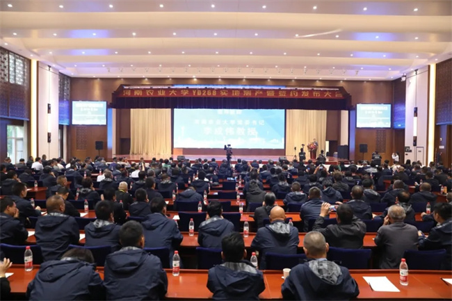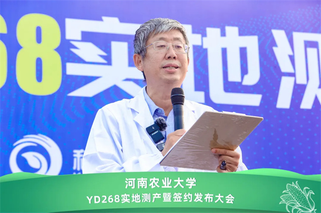 李成偉在致辭中介紹了河南農(nóng)業(yè)大學(xué)的基本情況,以及學(xué)校以創(chuàng)建中國特色世界一流農(nóng)業(yè)大學(xué)為奮斗目標(biāo),堅(jiān)持“一目標(biāo)、兩路徑、雙核N區(qū)”發(fā)展思路,強(qiáng)力推進(jìn)“雙一流”創(chuàng)建,緊抓與中國農(nóng)業(yè)科學(xué)院融合發(fā)展歷史機(jī)遇,設(shè)立中國現(xiàn)代農(nóng)業(yè)聯(lián)合研究生院并實(shí)現(xiàn)首批招生的情況。李成偉指出,玉米是我國種植面積最大的糧食作物,在保障國家糧食安全方面發(fā)揮著重要作用。河南農(nóng)業(yè)大學(xué)玉米遺傳育種學(xué)科長(zhǎng)期致力于提升玉米產(chǎn)業(yè)水平,為河南省乃至黃淮海地區(qū)玉米產(chǎn)業(yè)發(fā)展作出了持續(xù)的突出貢獻(xiàn)。河南農(nóng)大一代代玉米專家接續(xù)奮斗在玉米育種科研一線,開創(chuàng)我國農(nóng)作物南繁北育先河,先后育成豫玉22、偉科702、豫單9953、豫單888、MY73等30多個(gè)玉米新品種,為黃淮海地區(qū)玉米的生產(chǎn)、產(chǎn)量品質(zhì)提高提供了理論與技術(shù)支撐,打造了保障國家糧食安全的“河南名片”,讓腳下的這片土地成為真正的“中原糧倉”“國人廚房”“世界餐桌”。此次由我校湯繼華教授團(tuán)隊(duì)精心選育出的玉米新品種“YD268”,正是適應(yīng)當(dāng)前生產(chǎn)需求的新一代玉米品種的優(yōu)秀代表,相信通過校企深度合作,必將推動(dòng)YD268的快速推廣,必將對(duì)進(jìn)一步促進(jìn)玉米種業(yè)振興,解決種業(yè)“卡脖子”問題,提升玉米種業(yè)競(jìng)爭(zhēng)力,打好種業(yè)“翻身仗”、保障糧食生產(chǎn)新一輪千億斤提升計(jì)劃順利實(shí)施產(chǎn)生積極作用。