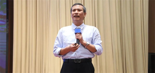 ▲學(xué)術(shù)副校長(zhǎng)、YD268育種團(tuán)隊(duì)負(fù)責(zé)人湯繼華作專題報(bào)告