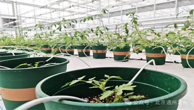 加代室里寬敞明亮,撲面而來的暖風(fēng)讓人感覺舒適,這里并沒有大片的土地,作物們站在“種植盆里”,享受著舒適的環(huán)境,種植盆中插著白色管線,“這是水肥一體化的滴灌裝置,可以讓作物按需吃飽、喝夠。”工作人員介紹道。
