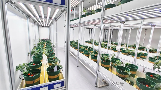“番茄現(xiàn)在已經(jīng)進(jìn)入坐果期,出于育種需要我們只留兩穗果,目前生長狀況良好。”工作人員許理文介紹道,室內(nèi)生長室采用全人工光,精準(zhǔn)的智能水肥控制,比傳統(tǒng)育種方式快2至3倍,目前可以滿足番茄、小麥、水稻、玉米、大豆、綠豆、生菜等作物的育種,實(shí)現(xiàn)一年四代甚至七代的繁育。