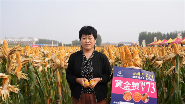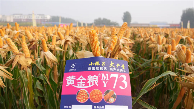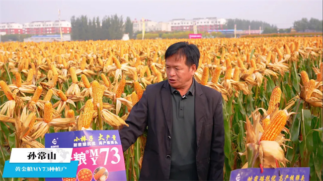 種植大戶(hù)孫常山在接受采訪說(shuō):“黃金糧MY73有密度,耐密性非常好、抗高溫干旱能力強(qiáng),結(jié)實(shí)好,抗倒伏,小棒子,大產(chǎn)量。在本村農(nóng)戶(hù)基本上都種的黃金糧,產(chǎn)量在1800斤左右,這個(gè)產(chǎn)量大家都感到非常滿(mǎn)意。”MY73經(jīng)銷(xiāo)商閆樂(lè)義在接受采訪時(shí)說(shuō):“黃金糧MY73具有密度大、品質(zhì)好、出籽率高,高產(chǎn)優(yōu)勢(shì)明顯。”