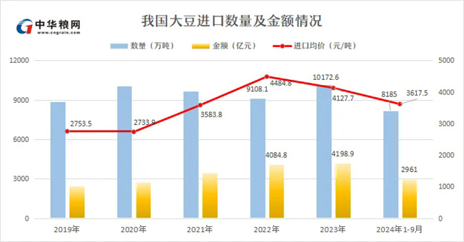 中國(guó)9月大豆進(jìn)口1137萬(wàn)噸,較上年同期增加約59%,1-9月我國(guó)累計(jì)進(jìn)口大豆8185萬(wàn)噸,同比增加8.1%。